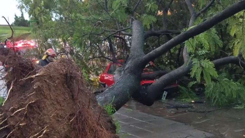 Una densa lluvia con ráfagas intensas de viento se desataron este jueves a la tarde en Rosario y alrededores con un saldo preliminar de árboles caídos y cortes de luz.