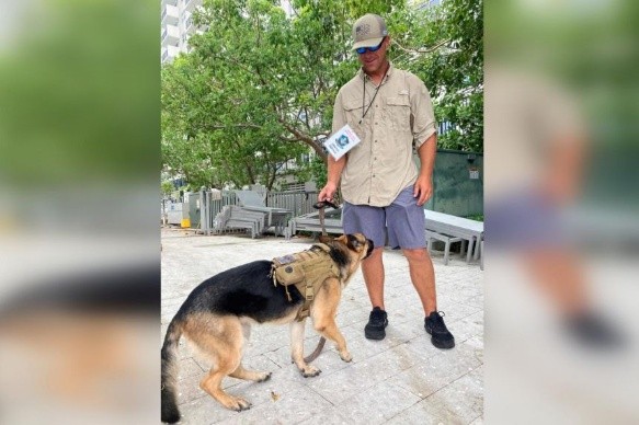 Gracie, de cinco años de edad, le ayudó a superar el trauma que experimentó sirviendo en el ejército estadounidense en Irak y espera que la perra pueda hacer lo mismo por la gente de Surfside, Florida.