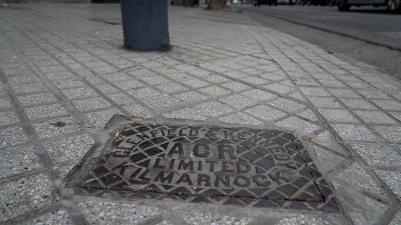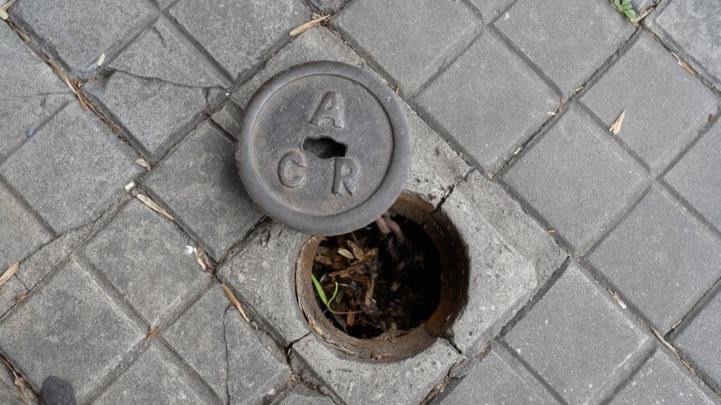 Al lado, en esa ochava céntrica, una tapa de hierro con el mismo molde de rombos que la boca de tormenta y las siglas en inglés (RWW) certifica que fue previo a empezar a usar el nombre en español (ACR). Puede que ese rincón pisoteado a diario por zapatillas y zapatos tenga unos 150 años ahí.