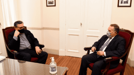 Este viernes, el ministro de Seguridad de Santa Fe, Jorge Lagna, se reunió con el arzobispo de Rosario, Eduardo Martín. El encuentro tuvo como objetivo coordinar acciones para mejorar los trabajos de contención en los distintos barrios de la ciudad y así reducir los niveles de violencia.