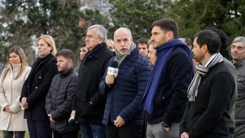 La actividad, que se llevó a cabo en Dorrego y el río Paraná, en el parque de las Colectividades, este jueves por la mañana, fue presentada como “una revolución de la seguridad en la Argentina”. La primera propuesta “inmediata” es, anunció Larreta asignar al Ejército el cuidado de las fronteras y liberar a Gendarmería de esa tarea para “sumar unos 10 mil gendarmes para actuar de forma urgente en las zonas más calientes de la droga”, entre ellas Rosario, el conurbano bonaerense y el sur de Córdoba “donde las mafias del narcotráfico están entrando cada vez más”.