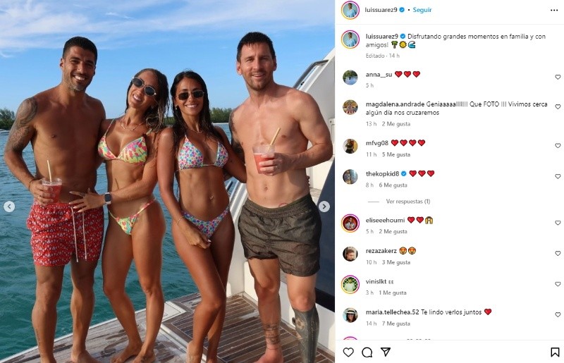 Como todos los años, Lionel Messi y Antonela Roccuzzo disfrutan de sus vacaciones con sus amigos Luis Suárez y Mariana Balbi.