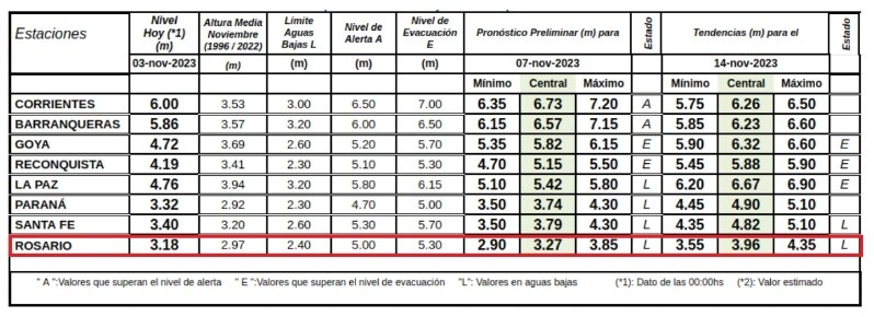 El pronóstico para el próximo martes 14 de noviembre contempla un nivel máximo de 4,35, casi un metro más que ahora.
