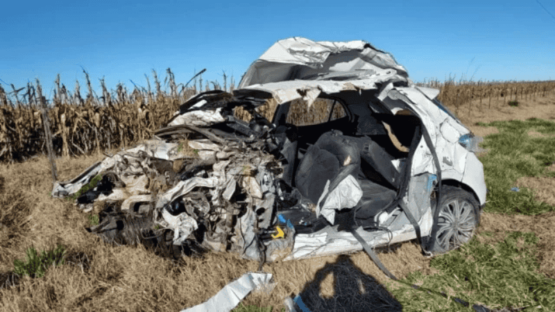 El accidente ocurrió en inmediaciones de Francisco Madero, partido de Pehuajó, en el kilómetro 389 de la ruta nacional 5. El Fiat Argo blanco en el que viajaba la familia colisionó de frente con un camión Fiat Iveco de gran porte, y producto del impacto, ambos vehículos se prendieron fuego.