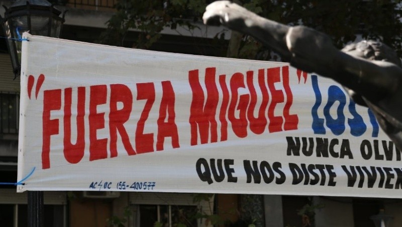 El pasacalle fue puesto por el gremio portuario Supa e indica: "Fuerza Miguel. Los portuarios. Nunca olvidaremos que nos diste viviendas. ¡Gracias!".