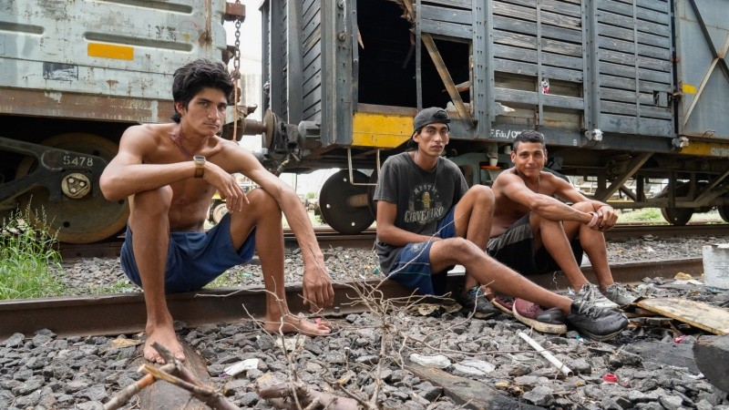 El muchacho calza los brazos a los costados de la cadera. Está por su cuenta desde los 12 años cuando su madre y padre fallecieron. “Me quedé solo y sin nada, pero hace un tiempo estoy con ellos, estamos tranquilos, tomamos mate acá afuera, charlamos, nos visita una amiga y también hablamos con los otros que están en el tren”, explicó sobre la dinámica del lugar.
