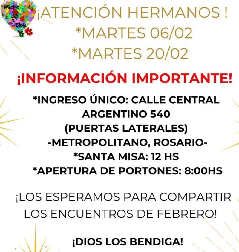 El único ingreso al salón es por las calles laterales de calle Central Argentino 540. La apertura de los portones será a las 8. En tanto, se prevé que la misa se concrete a las 12. Luego de la celebración, el esposo de Leda hace la prédica de la Biblia y a continuación, se inician las bendiciones.