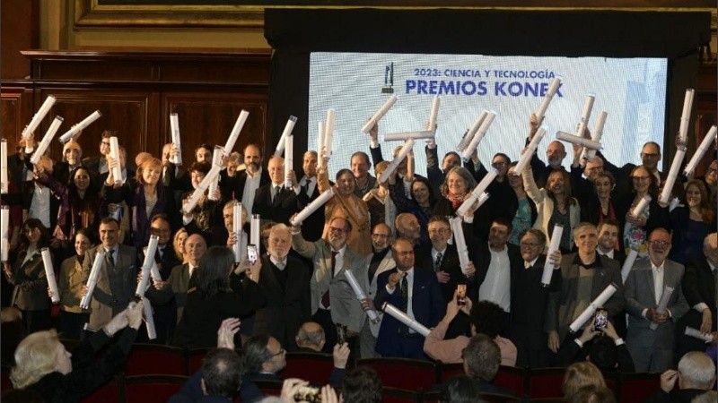 Del acto participaron el presidente de la Fundación Konex, Luis Ovsejevich; el presidente del Gran Jurado de los Premios Konex 2023, Alberto Kornblihtt; Andrea Gamarnik, en representación de los 100 premiados, entre otros.