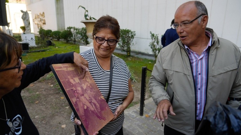 Se ríen de la casualidad porque el veterano trajo, a su vez, otras fotos antiguas (marinos en el portaaviones ARA 25 de Mayo) que ahora se las pasan e intercambian. Las hermanas valoran el espacio. Dicen que hay placas de su hermano en una plaza y en el Monumento pero es “buenísimo que hayan creado este lugar común, porque Malvinas es una herida abierta”.