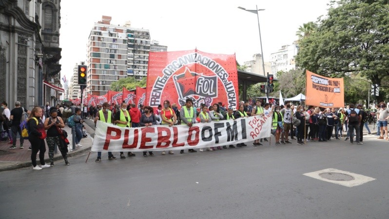 Después de una mañana con protestas y piquetes en 35 puntos de Rosario y la región, organizaciones sociales y políticas realizaron un acto este mediodía en la plaza San Martín y frente a la Sede de la Gobernación contra el acuerdo con el Fondo Monetario Internacional (FMI).