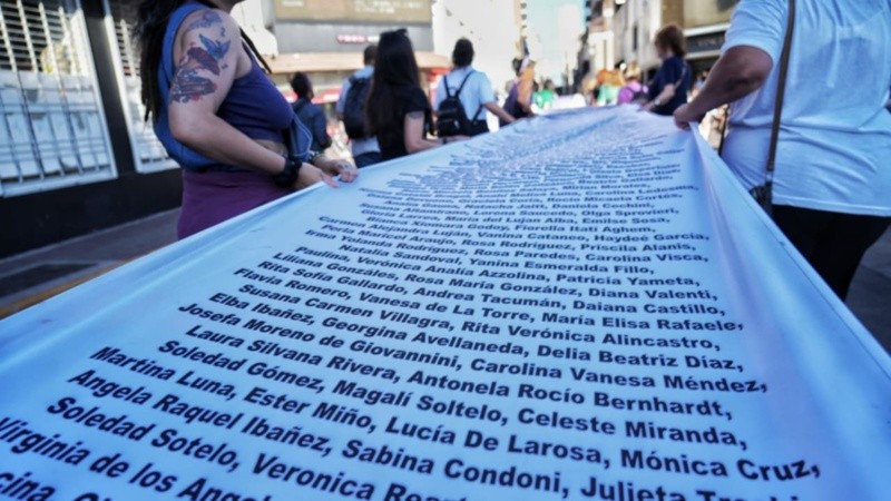 En el trayecto se portó la bandera con los nombres de víctimas de femicidios que ya se había presentado el pasado 3 de junio, en la 10ª marcha Ni Una Menos en Rosario.