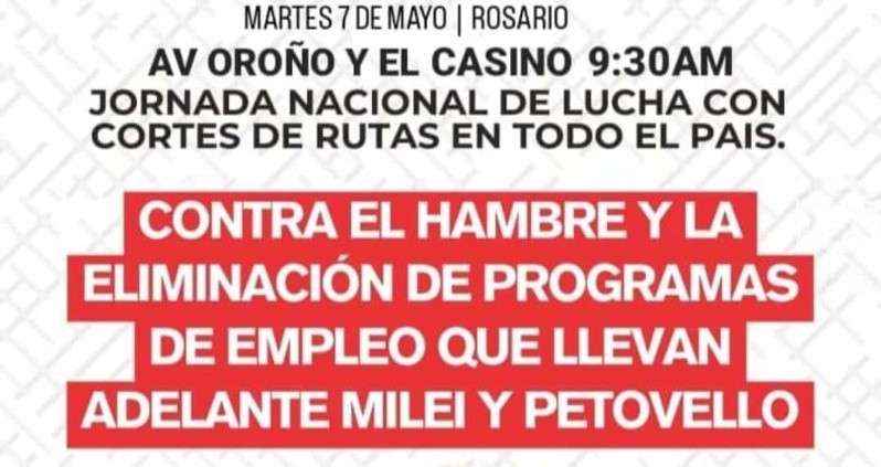 La convocatoria a los piquetes es “contra el hambre y la eliminación de programas de empleo que llevan adelante Milei y Petovello”. Los mismos se realizaban tanto en los principales accesos de la ciudad como en la esquina de los bancos de San Lorenzo.