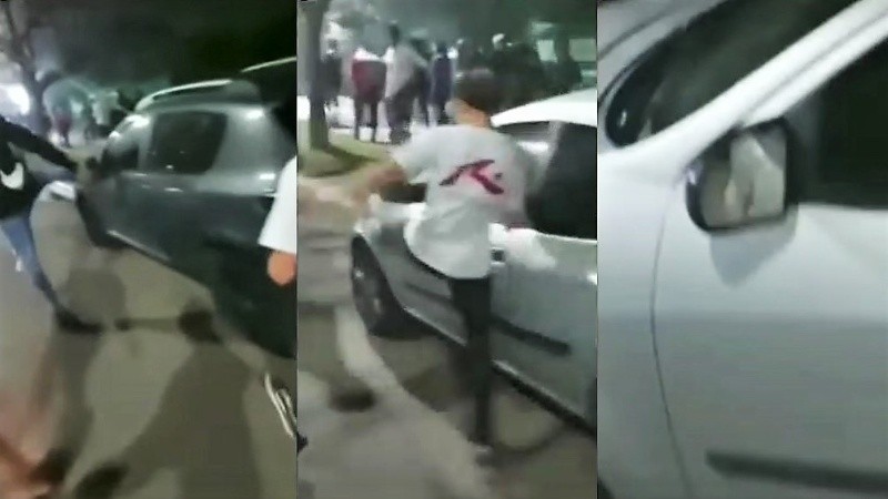 En los videos se ve cómo un grupo de adolescentes, que según trascendió tendrían casi todos 17 años, avanzan caminando por la calle y al menos dos de ellos son los que patean vehículos, en espejos y ventanillas.