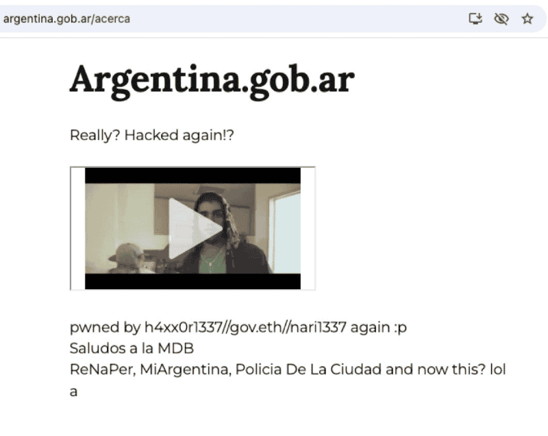 Gov.eth representa una figura que combina activismo digital y una profunda crítica social. Sus ataques suelen ir acompañados de mensajes que cuestionan directamente a las autoridades y los organismos encargados de garantizar la seguridad digital. En el reciente ataque a Mi Argentina, el hacker dejó un mensaje irónico: "Really? Hacked again!?". Esto no solo evidencia la facilidad con la que logró acceder al sistema, sino que también plantea un interrogante sobre el nivel de preparación tecnológica del Estado argentino para enfrentar amenazas digitales.