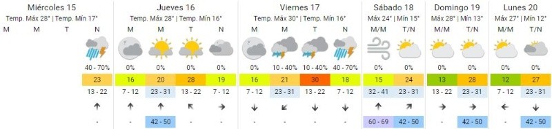 El pronóstico extendido muestra un nuevo ascenso de temperatura para el viernes, con 30 grados de máxima, y la probabilidad de tormentas aisladas para el cierre de ese día, en el comienzo del fin de semana largo con un balotaje presidencial en el medio pero al parecer, sin lluvias.