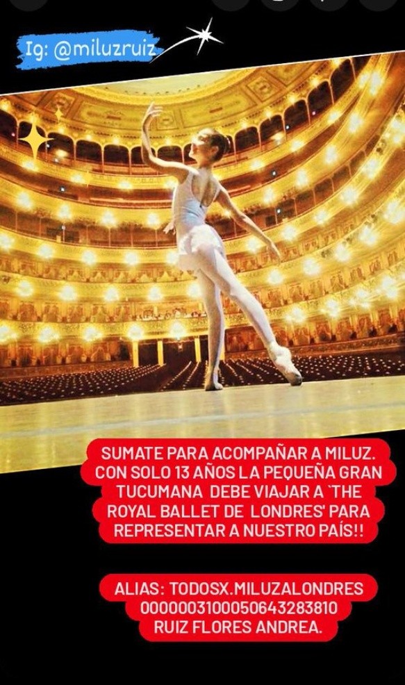 La historia fue compartida por Javier Cacieccio, un periodista y movilero tucumano que aportó detalles de la vida de Miluz - el nombre artístico de la bailarina - y pidió que se conozca su talento para que la comunidad ayude a cumplir su objetivo.