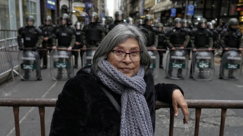 La militante radical vino sola a la manifestación. Sus dos hijos votaron a Milei. Hace una autocrítica: “Con mi marido no hablábamos de política en casa y para la política se requiere formación, sino los medios te pasan para el cuarto. Yo cuando era joven les creía a todos. Hay que estudiar, yo plancho escuchando historia”.
