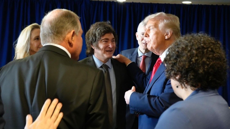 Previo al encuentro con el mandatario argentino, que duró cerca de 20 minutos, en un posteo en su red Truth Social, Trump dijo: "El muy respetado presidente de Argentina, Javier Milei, ha demostrado ser un líder verdaderamente fantástico y poderoso para el gran pueblo de Argentina, avanzando en todos los niveles a una velocidad récord. Heredó un desastre total con una inflación horrible causada por el anterior presidente de izquierda radical (al igual que el torcido Joe Biden, el PEOR presidente de la historia de nuestra nación), pero ha devuelto la estabilidad a la economía argentina y la ha elevado a un nuevo nivel de prominencia y respeto".