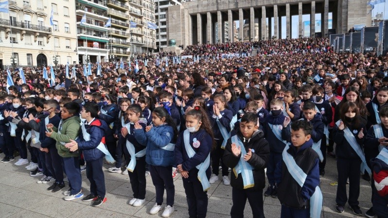 La promesa de lealtad a la Bandera argentina es una tradición con sello rosarino que todos los años convoca a miles de chicos y chicas de los cuartos grados del país al Monumento. Debido a la pandemia, en 2020 y en 2021 no se pudo realizar. Y este martes, depsués de dos años, finalmente los chicos volvieron a rendir homenaje al pabellón nacional en el mimos lugar donde se izó por primera vez.