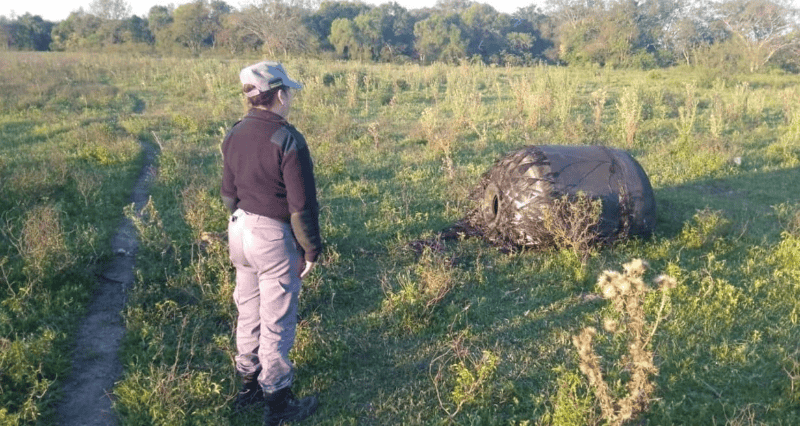 Este jueves en la zona rural de Puerto Tirol, Chaco, encontraron una "basura espacial" que sorprendió a todos los vecinos. Fue alrededor de las 18 hs cuando la Policía recibió el aviso de varios residentes que hablaban de la caída de un artefacto cilíndrico desde las alturas, que terminó incrustado en un campo privado.