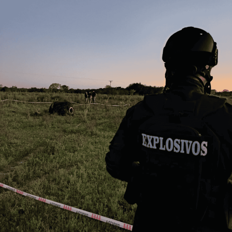 Según detallaron personal de la Comisaría, llegó al lugar y constató la presencia del objeto, cuya forma y material atrajeron atención inmediata. Por protocolo, se dio intervención al Departamento de Bomberos Metropolitana para descartar cualquier riesgo explosivo, y se dispuso el resguardo del perímetro a la espera de personal técnico especializado.