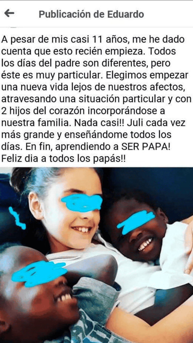 Antes de borrar su perfil de las redes sociales, Rucci posteó para el Día del Padre, en junio pasado, una foto de su hija biológica con sus hermanitos adoptivos entre abrazos y risas.