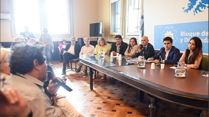 De la conferencia de prensa en la que detallaron sobre el pedido formal, participaron los diputados Aldo Leiva, Agustina Propato, Germán Martínez, Roxana Monzón, Juan Manuel Pedrini, Ricardo Herrera, Jorge Neri Araujo, Andrés Freites, Carolina Yutrovic, Jorge Romero y Eduardo Valdés.