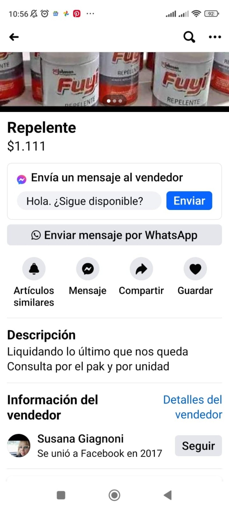 En este caso, según pudo saber, los estafadores ofrecen el repelente a $3.500 por unidad y entre $27.000 y $30.000 el pack de doce.