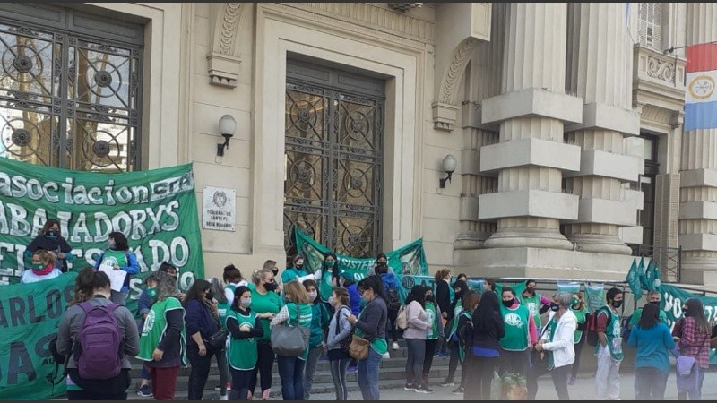 Dos movilizaciones se llevaban a cabo en la mañana de este miércoles en inmediaciones a la sede de Gobernación delegación Rosario, en Santa Fe y Moreno. Se realizaban por un plan de lucha nacional en pedido de reapertura de paritarias, reincorporación de personas despedidas y por el pase a planta de contratados.