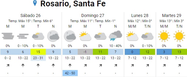 Específicamente para Rosario, el pronóstico extendido indica que el sábado comenzará a soplar el viento del sur con máxima de 15 grados.