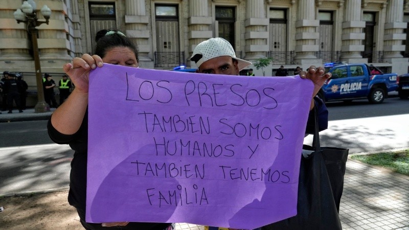 En diálogo con Radiópolis (Radio 2), una de las mujeres que este martes se presentó en el edificio de Santa Fe y Moreno, con el objetivo de ser atendidas por alguna autoridad del Ministerio de Seguridad, expuso sobre los familiares apresados en Piñero: “Está comiendo comida con gusanos, hace 20 días que no tienen visitas y los cagan a palos”.