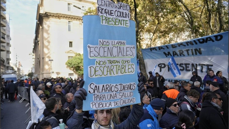Un nutrido grupo de trabajadores municipales realizó este viernes al mediodía una manifestación frente al Palacio de Los Leones, en la plaza 25 de Mayo, donde se lanzó un paro de 48 horas para la semana próxima.