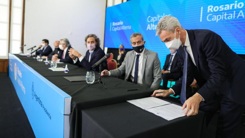 Incluso Meoni y Wado De Pedro había iniciado la conferencia de prensa en el patio de Gobernación para ampliar todo lo firmado en el interior cuando los interrumpió el presidente Alberto Fernández, de forma sorpresiva, para responder preguntas de los medios.