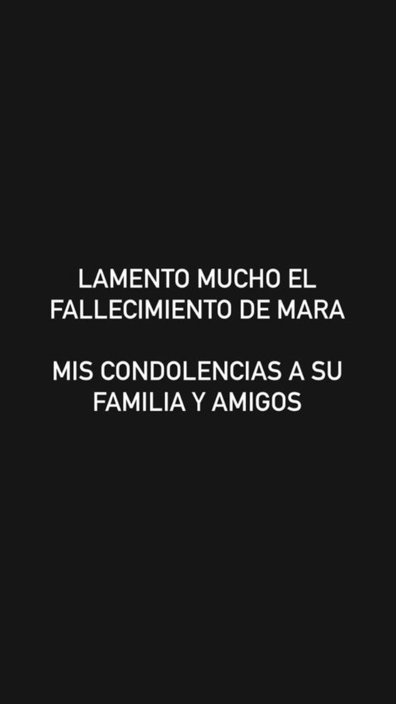 "Lamento mucho el fallecimiento de Mara. Mis condolencias a su familia y amigos", posteó.