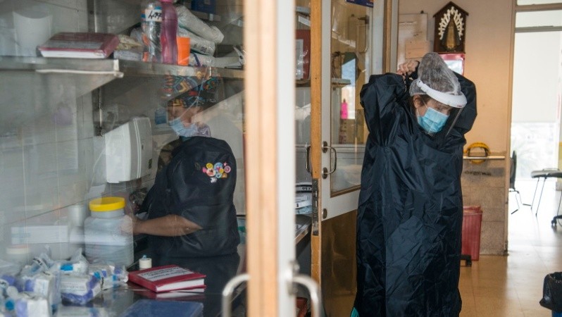 Dimónaco diferenció los cuidados que se toman en el hospital Centenario, de acuerdo a si la mujer gestante es covid positivo o negativo. “Si la mujer no tiene síntomas, nos cuidamos con un delantal impermeable, doble guante, doble bota, barbijo, máscara y gorro pero si la mamá es covid, el equipo es tipo astronauta. Así disfrazados la atendemos y siempre son los mismos, no hay rotación”, confirmó.