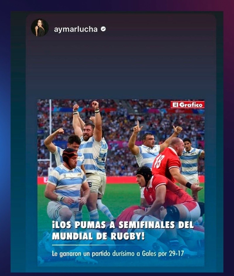 Luciana Aymar, la mejor jugadora de hockey argentina de todos los tiempos, compartió un posteo de El Gráfico en el que se aprecia una foto de Los Pumas festejando el triunfo ante Gales.
