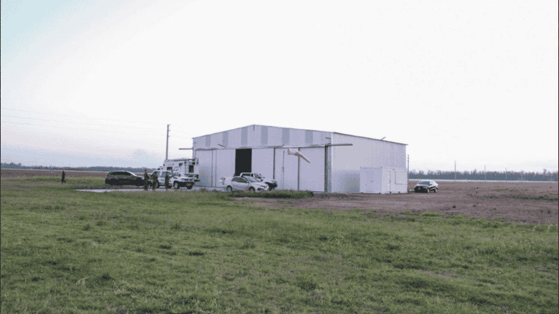 Una avioneta cargada desciende sobre un camino rural. Desde una camioneta Amarok, alguien filma la maniobra. Se ve que la aeronave aterriza y desde el interior tiran un bulto. En ese momento, la chata frena al lado y se corta la grabación.