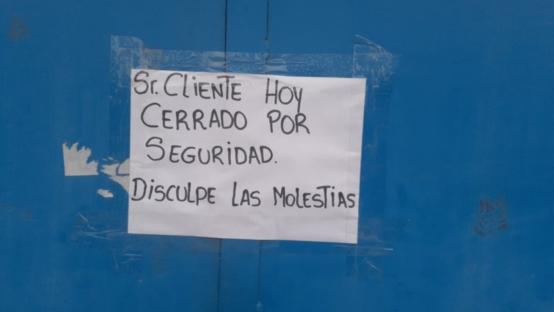 En esa cuadra, un autoservicio, que en 2001 fue objeto de saqueos, no abrió las puertas y colocó un cartel en el ingreso: “Cerrado por seguridad, disculpe las molestias”.