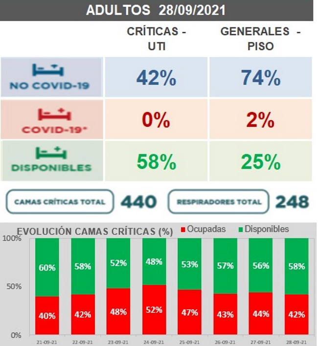 La saturación sufrida en la segunda ola de la pandemia de este año, con días de ocupación plena, marcan un contraste con el escenario actual. "Ni un solo paciente en el sector privado y en el público también era muy bajo el número", dijo Villavicencio.