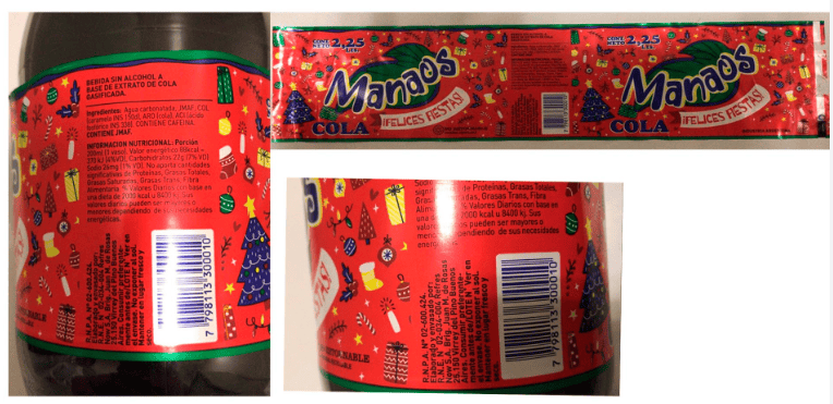 La bebida es la gaseosa a base de extractos de cola gasificada, por 2,25 litros, Manaos-Felices Fiestas (RNPA N° 02-600424, RNE N° 02- 034004).