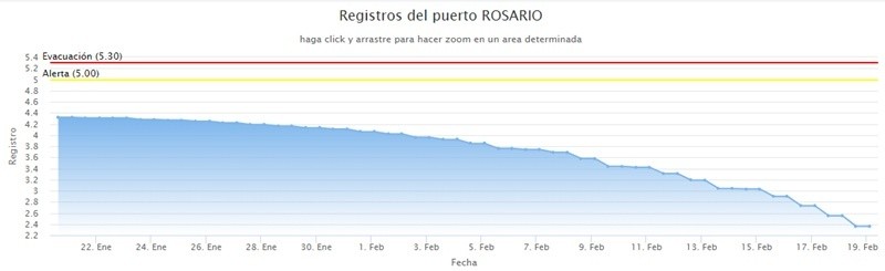 En su última medición, la Prefectura Naval Argentina registró en el Puerto de Rosario una altura de 2,36 metros.