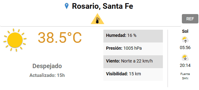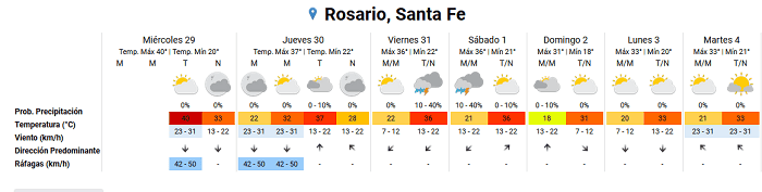 El Servicio Meteorológico Nacional (SMN) anticipa que la ola de calor seguirá durante los próximos días en Rosario, que este martes se posicionó primera en el ranking de temperatura a nivel nacional al alcanzar los 38,6 grados.