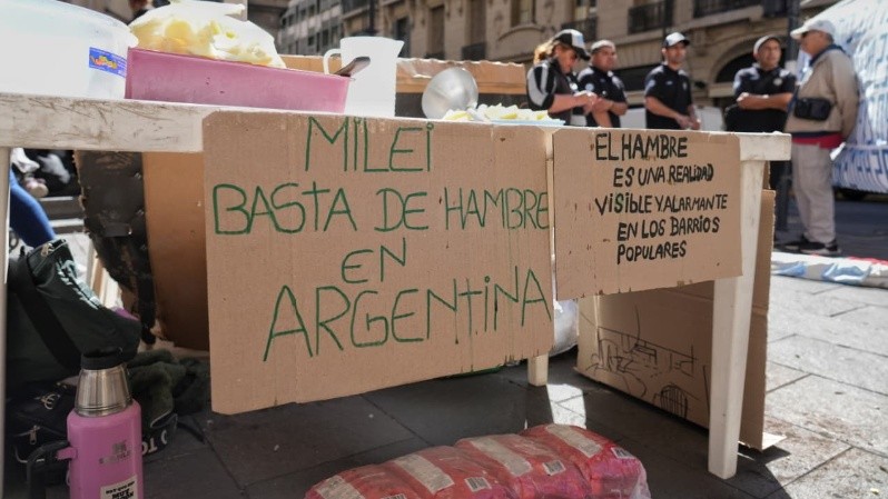 "El hambre es una realidad visible y alarmante en los barrios populares", señalaba uno de los carteles para denunciar "la desigualdad brutal que existe en nuestra ciudad y en la Argentina".