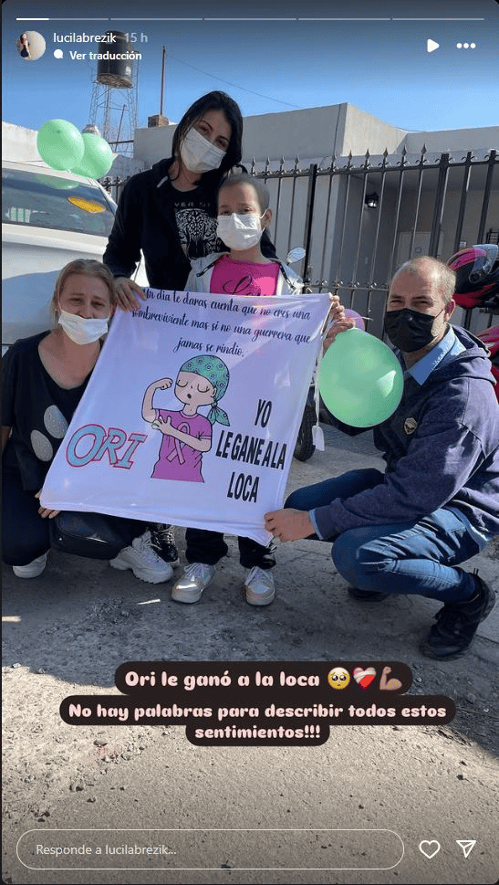 Según los videos que llegaron a este medio, este 29 de agosto, Oriana pudo salir de la internación para volver a su casa. "Ori le ganó a la loca", describía uno de sus carteles con el que compartió con sus papás.