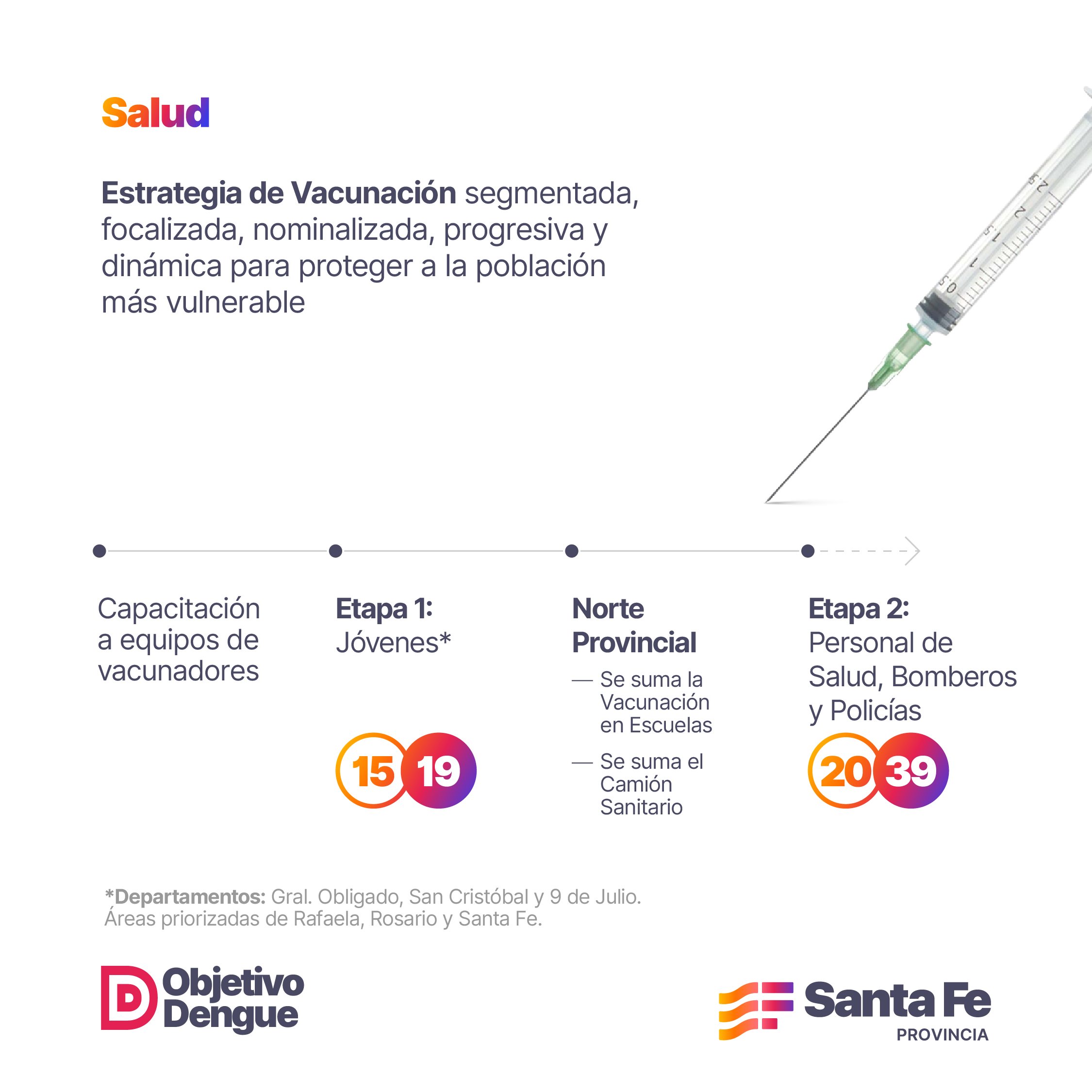 Asimismo, otra de las líneas de acción es la estrategia de vacunación contra el dengue en territorios priorizados, para adolescentes de 15 a 19 años; y para personal de salud, bomberos y policías que tienen entre 20 y 39 años, respecto a lo cual la ministra afirmó que se está “fortaleciendo el norte provincial con vacunación en las escuelas, con un camión sanitario que está llegando a las zonas más alejadas, trabajando fuertemente en las áreas priorizadas”.