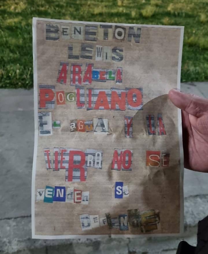 En cercanías a la sede consumida por el fuego se encontraron nuevos panfletos, similares a los que se encontraron en Bariloche en un ataque que se adjudicó el grupo Resistencia Ancestral Mapuche (RAM), con amenazas a la gobernadora Arabela Carreras y el intendente Bruno Pogliano con el mensaje: “el agua y la tierra no se venden, se defienden”.