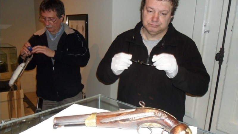 “Belgrano no la usó en combate pero sí en su casa o viajes como protección. Era un hombre que tenía una mano chica y le buscaron una pistola que le quedara cómoda. Ésta es la que tuvo hasta el momento de su muerte”, describió el restaurador, reconocido a nivel mundial por la calidad de sus reproducciones.