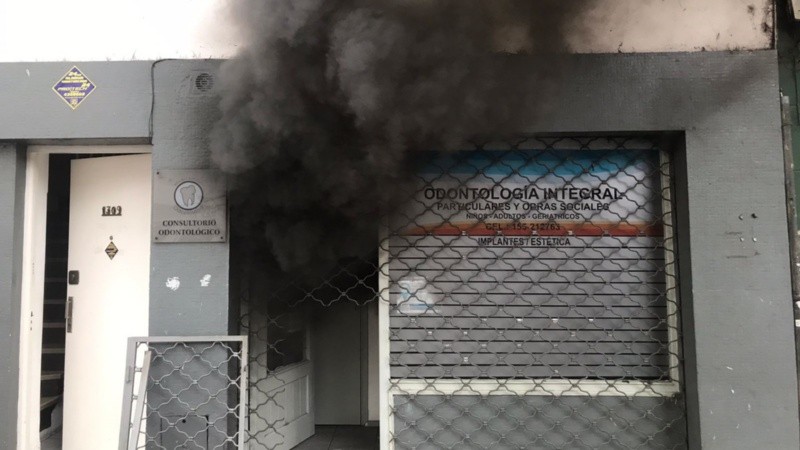 No se contaron heridos, pero se presume que el daño material sería importante, fundamentalmente por el hollín: una densa columna de humo negro sorprendía desde la puerta del consultorio.