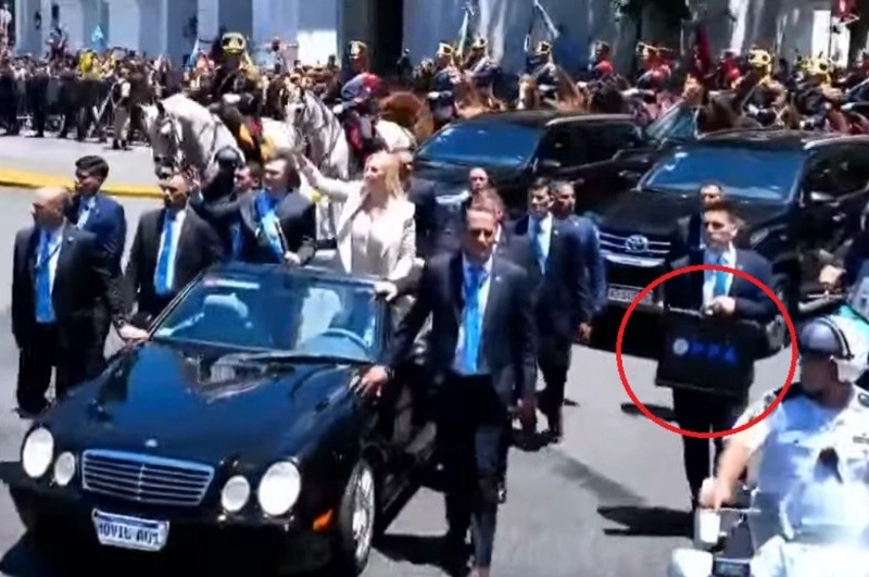 El personal con maletines se posicionó cerca de Milei cuando bajó de su auto para ingresar al Congreso, y también cuando salió para dar su primer discurso presidencial. A su vez, lo acompañaron durante la caravana rumbo a la Casa Rosada.