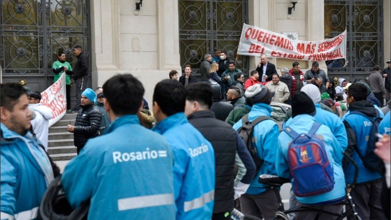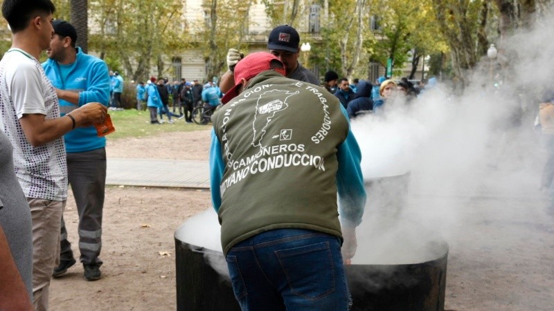 En el marco de un paro contra la inseguridad, el Sindicato de Recolectores de Residuos de Rosario marchó este viernes desde Pellegrini y Oroño a la sede de la Gobernación, en Santa Fe y Moreno. Al mediodía se concentraron en la plaza San Martín, donde cortaron el tránsito por Santa Fe y organizaron una olla popular de arroz.